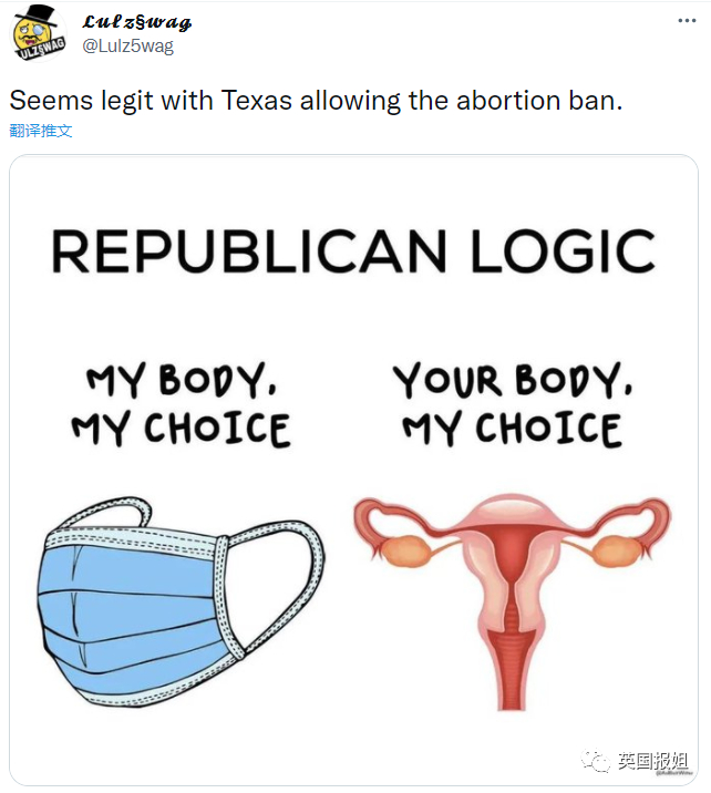 “所以…戴口罩或者接种疫苗是‘我的身体我做主’,但当涉及到生育权利和女性对自己身体的控制时,就不是这样了…