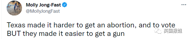 “德州让堕胎和投票都更难了,但他们却让买枪更容易了呢。”