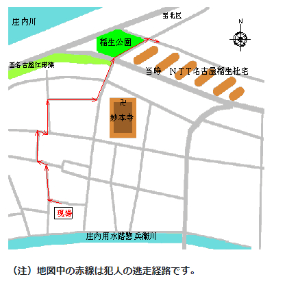 除了玄关,公寓的楼梯和停车场也留下了不少犯人的血迹。跟随断断续续的血痕,警察甚至描绘了出了犯人的逃跑路线,她顺着住宅区的小路,徒步走到了距离公寓500米远的稻生公园附近。