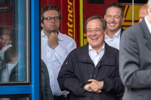 默克尔力挺的联盟党总理候选人拉舍特,就是刚才说的“稳定”、“可靠”、“温和”、“中立”的那位爷,同样丑闻缠身。不仅被爆出著作抄袭,更倒霉的是,在视察洪水袭击的灾区时,估计是某个受灾场面,让他突然想起了一个脱口秀包袱,于是表现出一副很开心的样子,笑得合不拢嘴。好死不死被摄影师拍了个特写,好死不死还把照片发遍了全世界。
