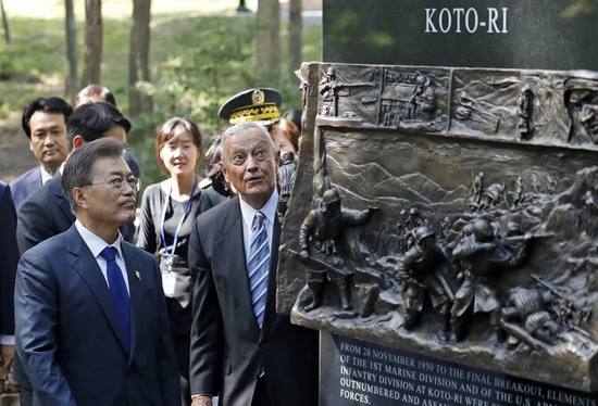 韩国总统文在寅访美时,参观“长津湖之战”纪念碑。