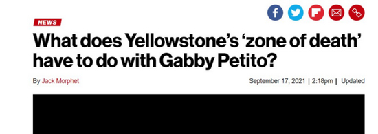 连新闻媒体《纽约邮报》都发表了一篇文章:《黄石公园的“死亡地带”和加比有什么关联?》。文章提到,加比最后一次现身是在大提顿国家公园打电话给她的家人。大提顿国家公园与黄石国家公园相邻,那里有50平方英里是可以规避美国法律,进行完美谋杀的死亡地带。
