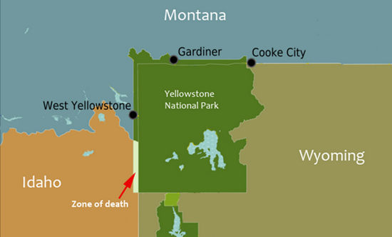 卡尔特经过考察,发现黄石公园的爱达荷州部分完全没有人类居住。唯一的居民只有灰熊与狼,无法组成陪审团。地理上位于蒙大拿州的那部分稍微好一点,居住着40名居民,但要组成符合法律规定陪审团也几乎不可能。
