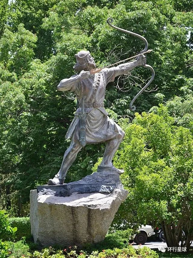 另外一个有名的故事是,为了结束伊朗和图兰旷日持久的战争,两国领袖同意由一位弓箭手来决定两国的边界,他开弓后箭飞到哪,两国的边界就划到哪。臂力惊人的神箭手阿拉什(Arash)主动请缨,在达马万德山顶拉动神弓,箭一路向东穿过云霄最终落在了河中的阿姆河泮(粗测两地距离差不多有1400Km),为伊朗赢得了广袤的领土。