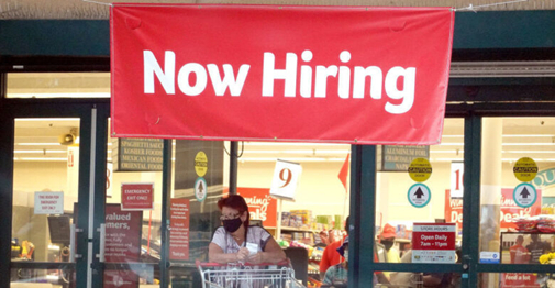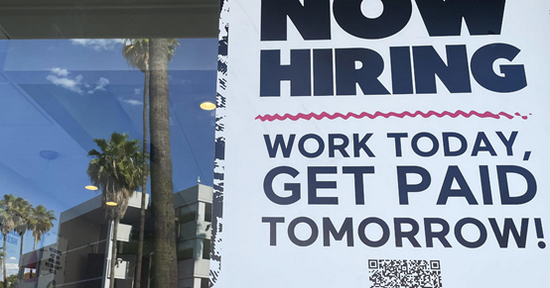 美国佛罗里达州哈伦代尔一个超市外的“正在招聘”条幅(Joe Raedle, GettyImages)