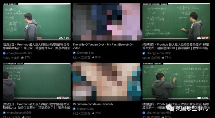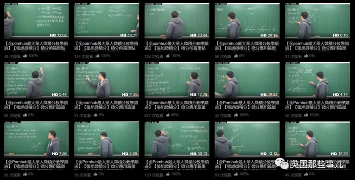 在视频标题上,张旭老师也花了很多心思。毕竟,没人会在Pornhub上搜索“微积分”、“大一数学”,