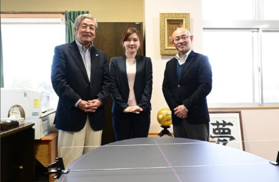 除了接受客座副教授的委任书外,福原爱还为青森山田学院的残疾人捐赠了专用的乒乓球桌。捐赠的乒乓球桌是便携式,尺寸只有正常尺寸乒乓球桌的三分之二大小,可供老人小孩以及残疾人使用。