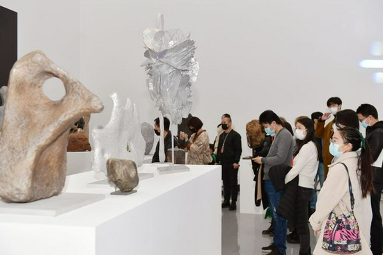 开幕式结束后,嘉宾、媒体和到场观众移步展厅观展,与艺术家们现场交流。