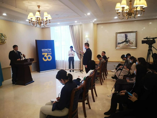 北京,2021年12月3日,在哈萨克斯坦共和国独立30周年前夕在哈萨克斯坦驻华大使馆以线下和线上的方式面向中哈主流媒体举行了新闻发布会。