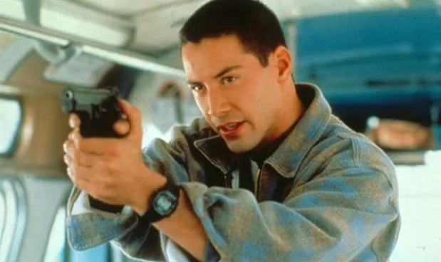 1994年,让基努红遍全球的《生死时速》上映,这部片直接开启了“交通工具动作片”和“英俊小生动作片”的两股风潮。这部片里的基努英俊高大、正气凛然,那张脸谁看了都得迷糊。在电影里,男主是寸头,很多年轻人也就模仿基努去剪了寸头。