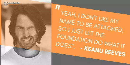 因为妹妹患有白血病,基努为治疗白血病的机构捐了很多钱,据说拍《黑客帝国》70%的收入都捐掉了,还专门有一个基金会做慈善,捐助医学研究,但基努的名字从不出现,“我只是让慈善基金会做它该做的事。”