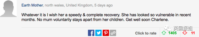 “不管啥,我希望她快痊愈。最近几个月她看着太孱弱了,没有妈妈会主动离开自己的孩子们的。夏琳,祝你早日康复。”