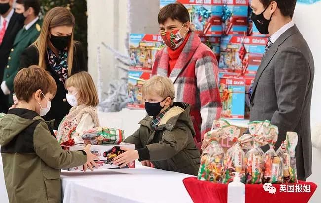 昨天,两个娃又在父母都缺席的情况下,被姑妈斯蒂芬妮公主带着参加王室一年一度的圣诞传统活动,和其他小朋友们互动。