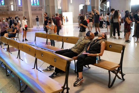 一位游客坐在圣家堂前。图片:CFP