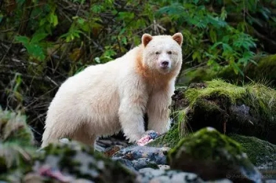 那叫柯莫德熊,又叫“白灵熊”,是美洲黑熊的一个亚种,分布在加拿大不列颠哥伦比亚的中部沿海一带。