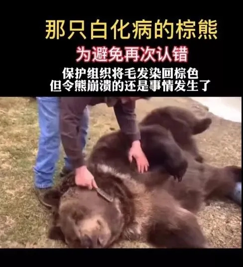 这一次,这个固执的动保组织终于看出来了它是一只得了白化病的棕熊,于是贴心地给它染了棕色。