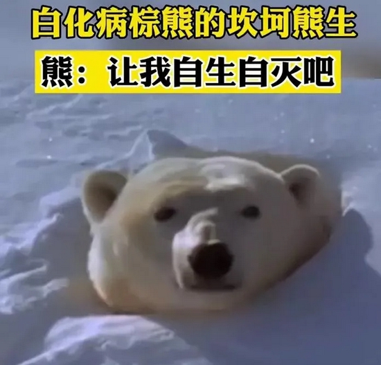 文字如下:这是乔伊,一只得了白化病的棕熊。每次在森林里被救助人员发现,他都会被送到北极。