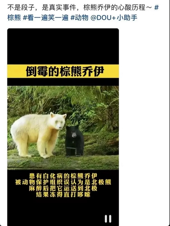 在短视频平台上,我刷到了至少5条关于这只倒霉熊的视频,问题是,每条视频的说法都不一样。