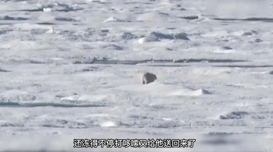 突然换了环境,它根本适应不了北极的温度,被冻得瑟瑟发抖,也不懂怎么找吃的。格格不入的样子还经常被真北极熊欺负。
