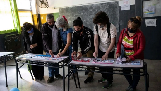 ◆2021年11月,在阿根廷首都举行选举,观察员在检查流程是否正常