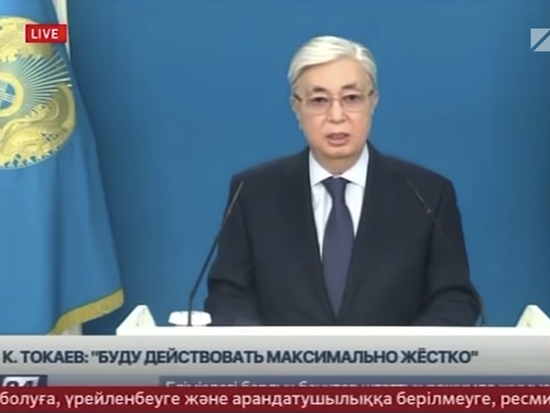 1月5日晚,托卡耶夫发表了措辞强硬的电视讲话,称抗议已经变成了明显有预谋的、有资金援助的行为,并对哈萨克斯坦构成了严重的安全威胁。“无论如何我将留在首都,和人民在一起是我的宪制义务。我们要一起迈过哈萨克斯坦历史上这一黑暗时段。”托卡耶夫说。