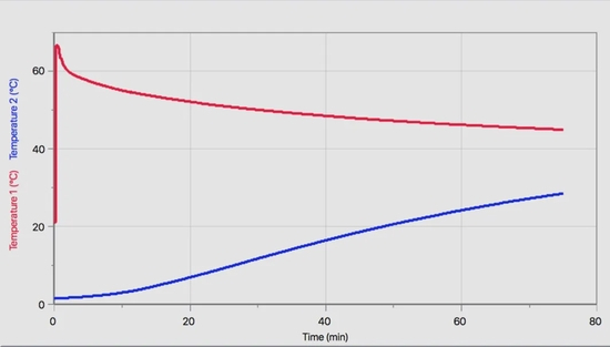 水温(红线)降低,但是火鸡(蓝线)的热量增加。|wired.com
