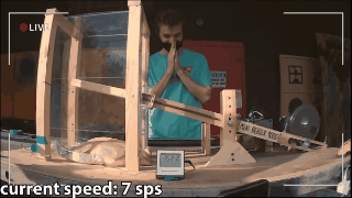 2020年12月,他制作了一个复杂的电机系统,将它命名为“打肉机9000”,通过木头手臂的拍打来提供热能。而这种拍打真的有效,鸡肉的温度上升了16℃。