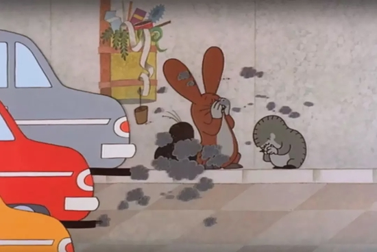 浓重的汽车尾气令小鼹鼠和伙伴们喘不过气
