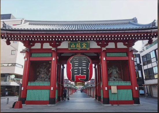 镜头一转,旧金山的金门大桥挂上了日式大红灯笼。别说,这么看还挺和谐。