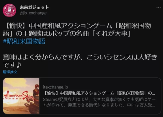 这款国产游戏名为《昭和米国物语》(Showa American Story),由武汉的铃空游戏开发,也是该公司的10周年纪念大作。