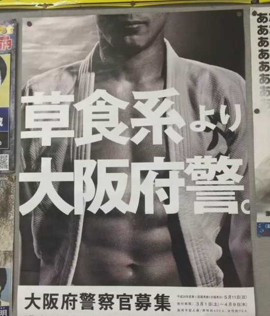 现实生活中,日本警察的竞争也是很激烈的,进行公开招募,很多县都会争相设计出独特的招募海报,甚至用腹肌来博得眼球。