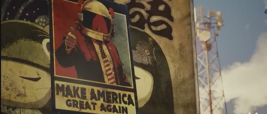 头盔也是废土文化的一种象征。后面藏着的是谁,都知道。