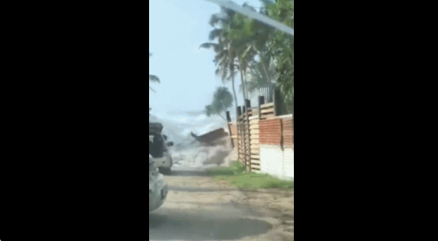 根据社交媒体上汤加网友发出的视频显示,海啸引起的大浪不断涌进居民住宅,人们赶紧驾车,在仓促和慌乱中逃走。