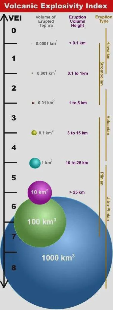 根据“火山爆发强度指数”(VEI)来看,1为最低级,8为最高级。