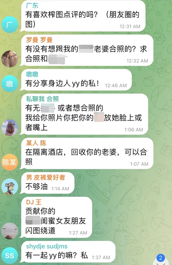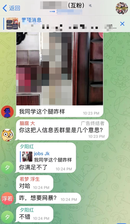 此外,她们的姓名、学校或工作单位、手机号码,甚至身份证信息也被扒出,公开在群里,这可能给她们带来更多性骚扰和伤害。