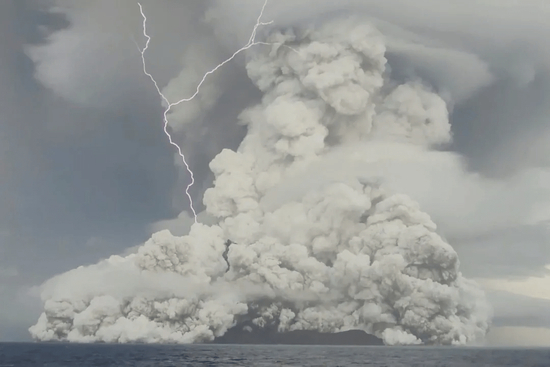 1月14日,汤加洪阿哈阿帕伊海底火山喷发。