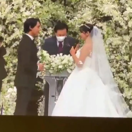 比如穿着洁白婚纱的信惠,和新郎崔泰俊在台上最重要的宣誓。
