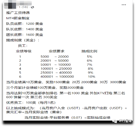 此类招聘信息遍布于海量以中文为主导的招聘群组,对于工作内容和性质毫不遮掩,工资待遇、奖惩机制明确,不营造工作逼格,不创造美好生活的幻觉,直接给人一种“狼性”的感觉。
