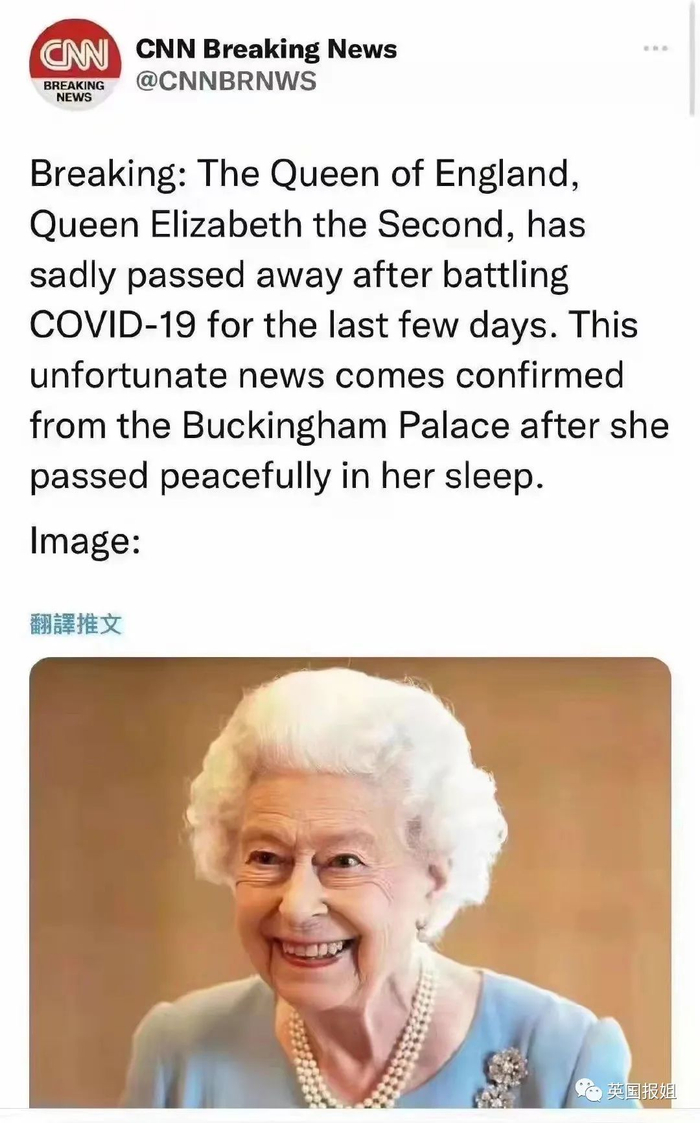 这么多年,关于女王去世的消息真是非常多了。因为她老人家高龄的原因,次次传得跟真的似的,有一次还是官媒自己搞过的乌龙。