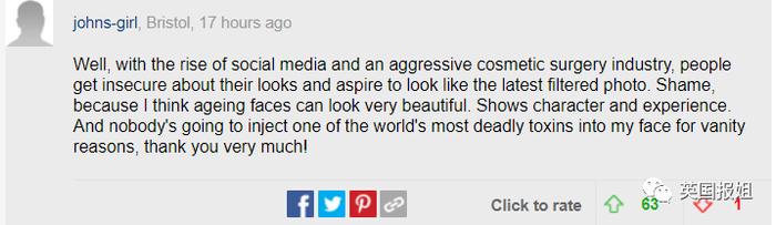 但这不止是虚荣心,没有人会仅仅因为虚荣就把世界上最毒的毒素注射到自己的脸上,留点口德。”