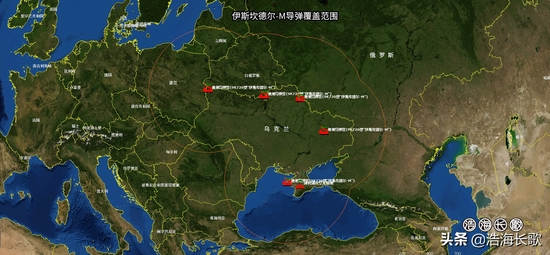 我做了一张伊斯坎德尔导弹的射程覆盖范围,图上可以看出,这三个点的伊斯坎德尔导弹就可以覆盖乌克兰全境,所以北约才发表申明不会派兵进入乌克兰。