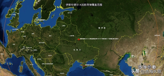 我也做了一张伊斯坎德尔-K型的打击范围,几乎整个欧洲,都在K型打击范围内,包括最远的英国,也未能逃脱。