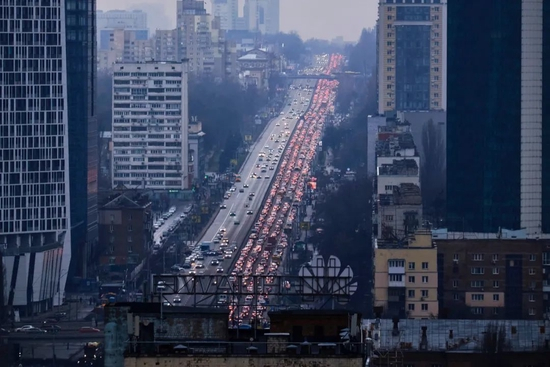 ◆24日,大批基辅市民开车欲出城前往乌克兰西部。