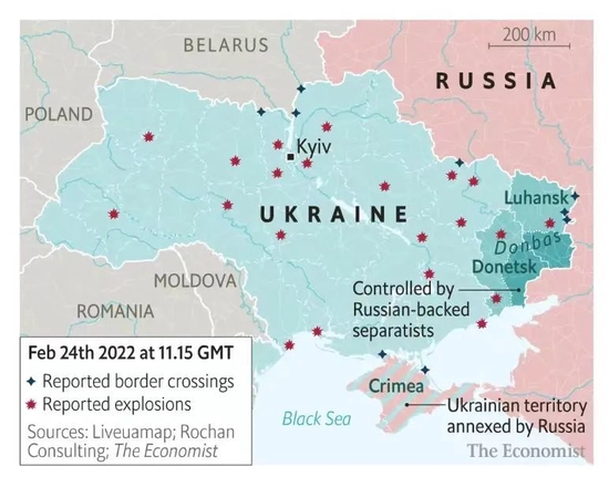 英国《金融时报》形容,俄罗斯今日发起的军事行动可能是二战结束以来欧洲最严重的军事冲突。