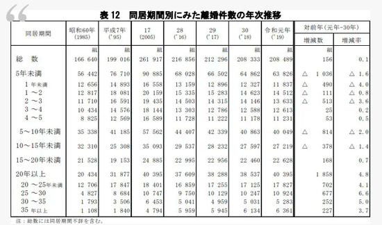 日本厚生省有关离婚数据
