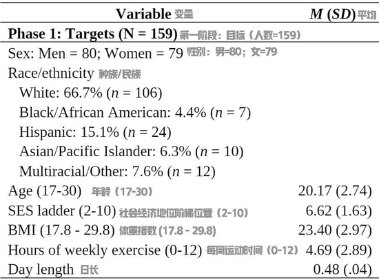 美国得克萨斯基督教大学研究团队挑选出159名(79人为女性)非肥胖、无慢性病史、无精神疾病、近期无急性疾病、不使用激素避孕药的平均年龄在20岁的被试者,要求他们在实验两天内不使用类固醇和抗炎药物,不要运动和饮酒,并测试了女性者被试的排卵周期,确保实验结果不受性类固醇激素的干扰。