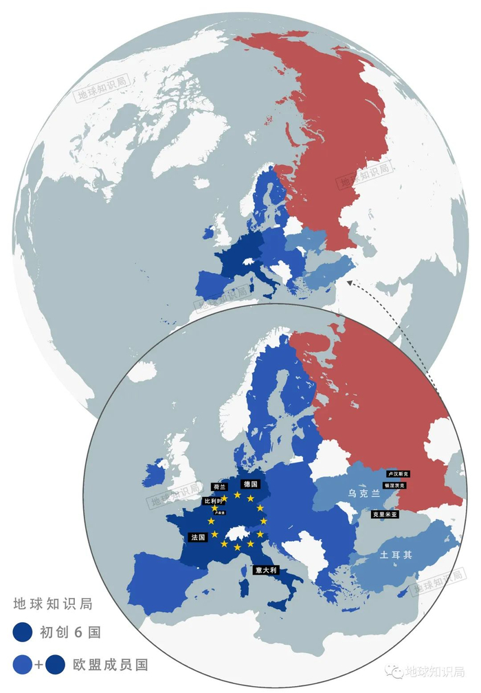 创始6国:德法意荷比卢;剩下的都是后来的▼