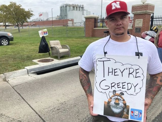 2021年10月7日,美国密歇根州巴特尔克里克,美国知名食品企业家乐氏的员工举行罢工。