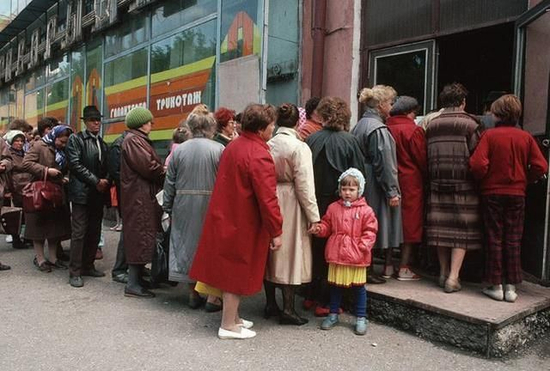 官方价格控制下的商品极端短缺,买什么东西都要抢着去排队,而且难以买到;真正反映市场价格的黑市流通商品,不仅价格高的离谱,同样种类和数量严重不足。