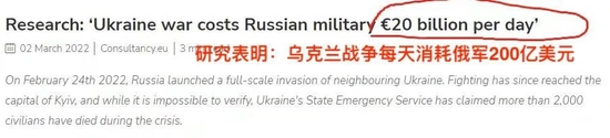前几天就有西方媒体在报道时,给出了“俄罗斯每天将为战争付出200亿美元代价”的惊人结论。